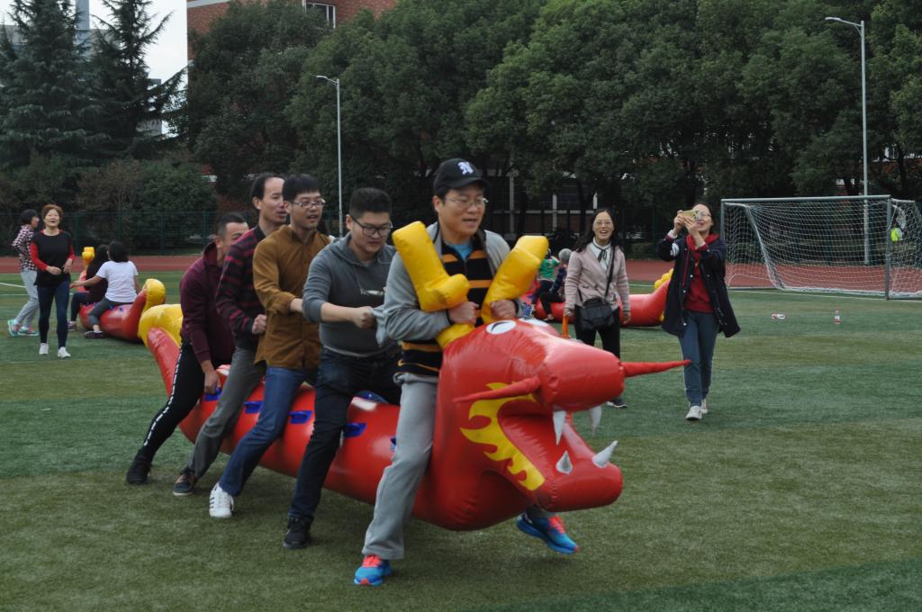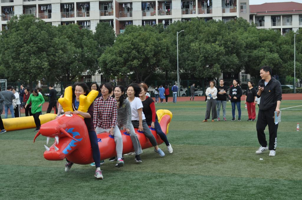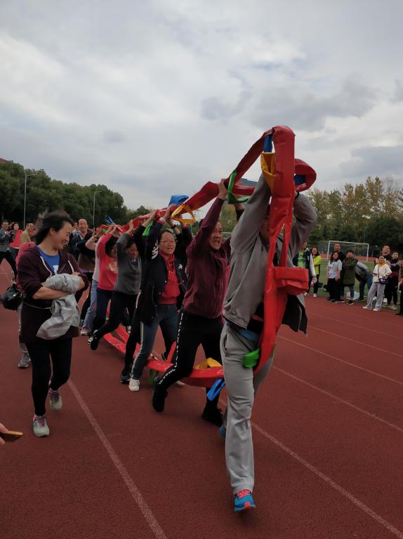 在紧锣密鼓的迎评工作中,我们迎来了嘉兴学院第十八届体育运动会。“我运动,我快乐!”暑假修葺一新的操场上,又飞扬起了全校教职工运动员们的欢声笑语。周五下午梁林操场上,陆陆续续出现了我们Hitomi 各位老师的身影。王淞化老师和周振行老师早已站在主席台前,聚精会神的研究着“长风破浪”项目。看到操场上五颜六色可爱的充气毛毛虫,女老师们迫不及待的跨了上去。可上去之后才发现,毛毛虫们的腰足有一棵老樟树那么粗,5个人移动起来不仅需要步调一致,还需要肩部摆动似乎才能前进。经过调整,5位长腿欧巴和长腿欧尼担当起了首战重任。在刁俊春老师和付晓莲老师的龙头带领下,竟然取得了第四的好成绩!