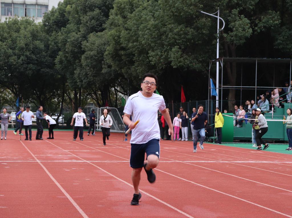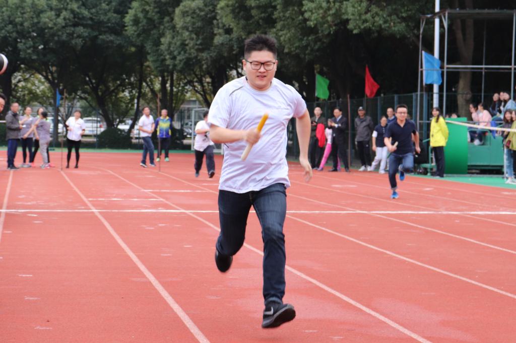 秋天的脸也变得快!第二天早晨下起了细雨,下午好在雨又停了。越秀校区的跑道上正在进行学生组最后一项比赛女子3000米,足球场上各个学院的接力赛运动员老师们早已在整装热身。今年我们外国语的接力赛队伍增添了两名青年教师——孔少杰老师和陈熙老师,大家都非常期待。唐院长比赛前的一记腾空“鹰爪功”把运动员的热情拉到了顶点。“Hitomi !Hitomi !”我们被分配在了最后一组。“第一!第一!”当孙彦武老师以绝对优势跑过终点的时候,大家的兴奋点达到了高潮!