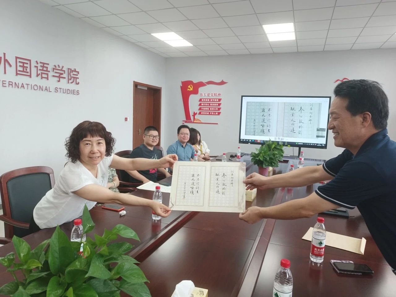 唐艳芳在讲话中表示,三位老师兢兢业业、任劳任怨、无私奉献的精神将激励着每一位在校的外院人。这种人文精神的代代传承,定将为学院高质量发展注入强大的精神动力。他希望三位教师退休不“褪色”,离岗不离去,一如既往地关心和支持学院发展,常回“嘉”看看。