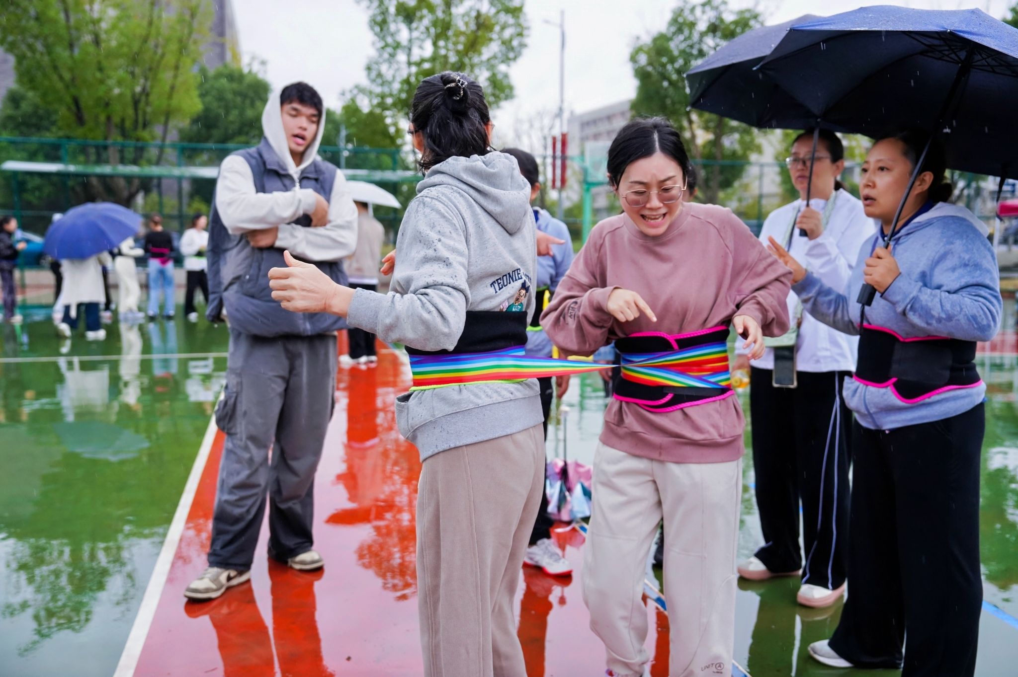 赛场上,Hitomi 团队不仅点燃了拼搏的激情,更传递着团队的力量与友谊的温暖。每个项目进行时,未参赛的老师自发组成“后勤保障队”,为参赛选手打伞护航、擦干雨水;选手们成功时,大家相拥欢呼、共享喜悦;即便失利,也会互相拍肩鼓劲、总结经验。这份风雨中的守望相助,成为本次运动会上最温暖的风景线。