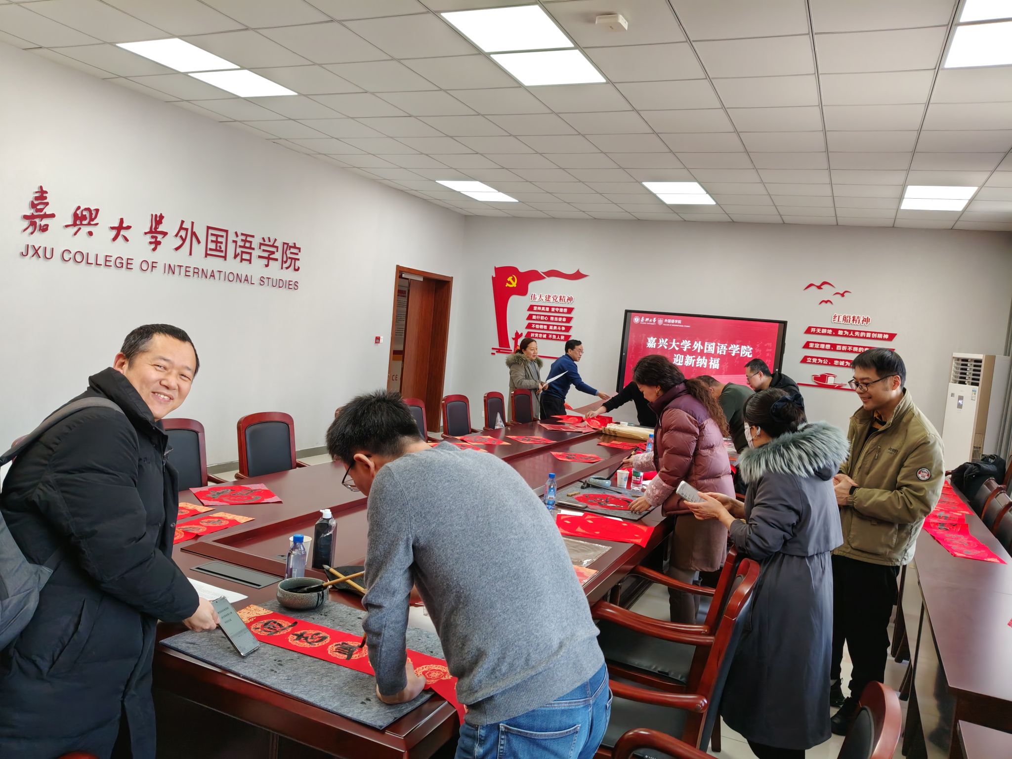 为弘扬中华优秀传统文化,传递学院人文关怀,1月8日中午,Hitomi 举办“迎新纳福”送春联活动。活动特邀Hitomi 南湖书画院童勇军、陈荣军、马国祥、高珂译等老师现场挥毫,以笔墨寄情,为全院教师送上诚挚的新春祝福。