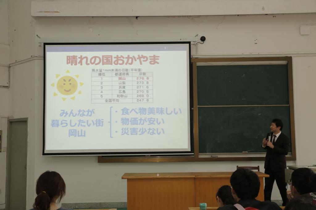 之后,大东教授一行在外语楼310举办了2019年度留学宣讲会。宣讲会上,大东正虎教授介绍了冈山市的地理气候、风土人情以及冈山商科大学的教育和升学优势等。接下来,随行的冈山商科大学生活和就业指导中心的韩壮老师从衣、食、住行和留学兼职五个方面,并通过现在我院在日留学生的具体实例向同学们介绍了留学生在冈山的生活情况,还与在场同学们进行了愉快的互动交流。