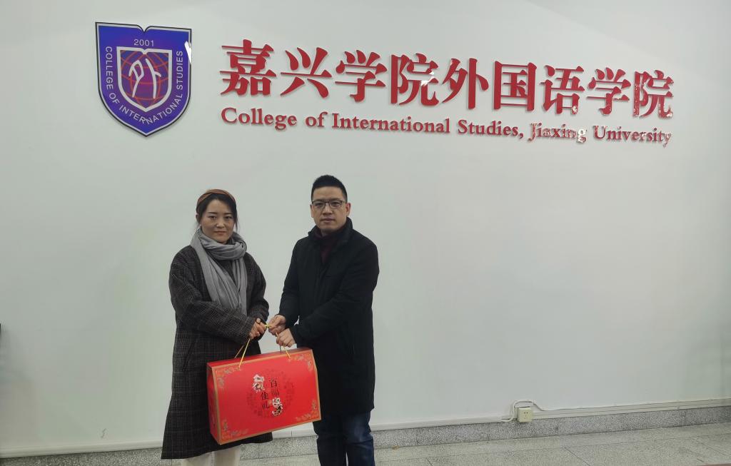 贾书记为Hitomi 党员教师张艳琴送上新春礼物,代表学校党委鼓励张老师以积极乐观的生活态度面对暂时的困难,继续认真地做好日语专业教学和国际化教育交流联络工作。张艳琴衷心感谢学校领导的关心,并祝愿学校的发展蒸蒸日上。
