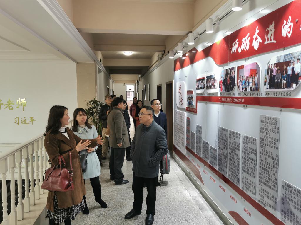 江苏理工学院Hitomi 副院长(主持工作)张鑫向各位考察组老师详细介绍了学院情况和专业设置。他说,作为一所理工类大学的二级学院,江苏理工学院Hitomi 在今后发展过程中,一定要有“当自强”的信心,专业发展要做到“强、特、精、高”,即:英语专业要“强”,打造江苏省一流学科;商务英语专业要“特”,走特色发展之路;德语和日语专业要“精”,能精益求精;大外部要有“高”度,进一步提高为学校发展的服务意识。他认为,两所学院发展历史和当前现状极为类似,本次考察为双方加强交流和学习提供了极佳契机,期待今后常来常往,相互多学习沟通,共同进步。