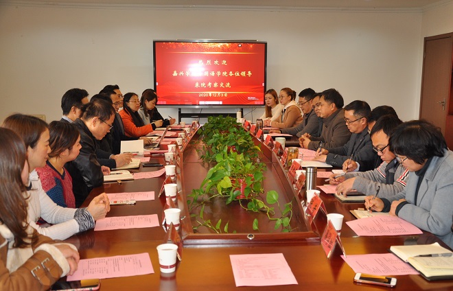 我院陶丹玉书记对江苏理工Hitomi 的热情接待和他们深度的经验分享表示诚挚谢意。她说,短暂的接触,贵校和贵院给我们留下深刻印象,特别是贵院近几年在学科建设领域取得的震撼成绩,以及领导和教师们的拼搏精神,令人钦佩,值得我们学习和借鉴。最后她代表学院党政班子诚邀江苏理工Hitomi 领导和同仁抽出宝贵时间来嘉兴交流和指导工作。