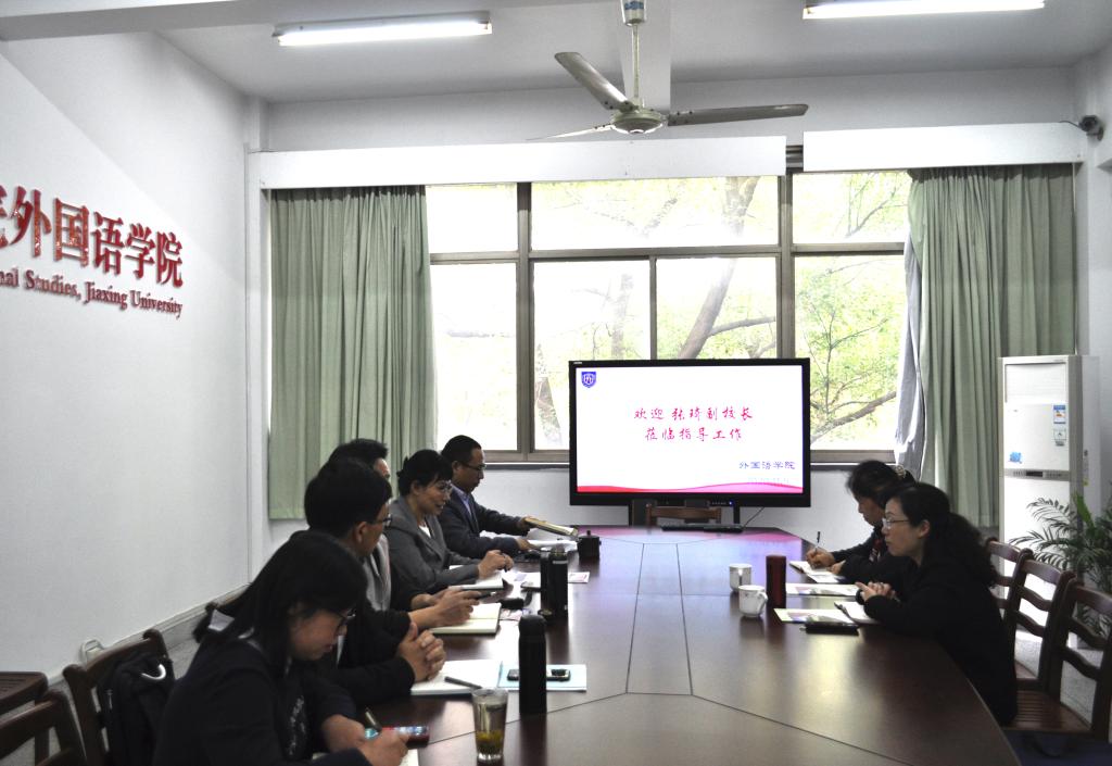 副院长郭永恩汇报了实验室建设情况,指出学院通过努力不断完善语言服务和实训中心建设,提议建设英语文化体验中心、日韩文化体验中心,以方便学生进行更好的文化体验。他还对于如何拓展外教聘用途径、深化国际化教育等方面提出了建议。