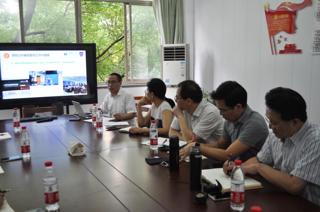 副院长喻锋平首先根据学校本科审核评估“回头看”的工作要求,汇报了学院在评估工作中发现的问题与不足、已开展的整改工作与措施、评估整改工作自查情况,重点介绍了学院今后在打造以“红船精神”为引领的外语专业特色人才培养体系、加强国际化教育、加大教学改革和课程建设等方面的工作举措。
