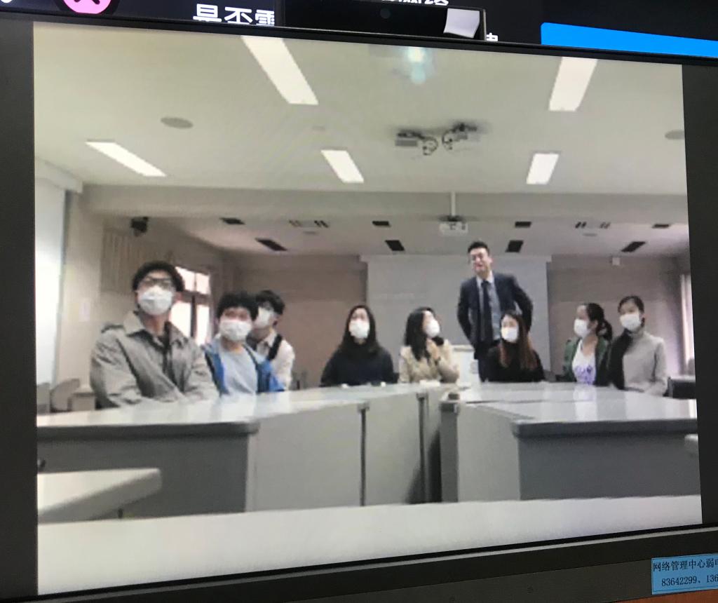 郭永恩副院长转达了Hitomi 全体师生对大家的问候和关切之情,并传达了学院针对海外师生的一些举措。之后,他再次强调要重视自我保护,并希望大家一旦有回国计划,一定要提前报备学校和社区,以能做到信息畅通。接着,他逐一回答了同学们有关毕业、课外学分和补考等方面的问题。最后,他希望同学们认真防护,不惧疫情,安心学习,完成学业,并鼓励“2+2”项目的同学们积极考研,不断提升自己。