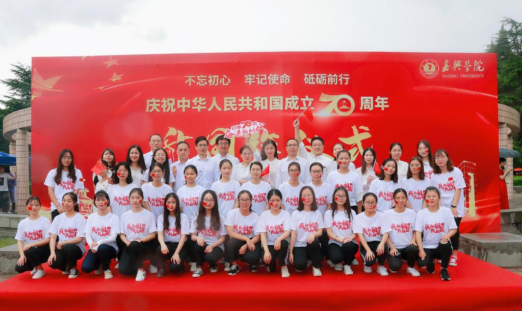 10月1日清晨,嘉兴学院六百余名师生齐聚越秀校区文化广场,伴随着庄严的中华人民共和国国歌,鲜艳的国旗冉冉升起、迎风飘扬,在场的每个人都向国旗行注目礼,为参加了这样神圣的仪式而感到无比激动与自豪。在回外语楼204会议室观看国庆庆典直播的路上,Hitomi 的师生们仍然情不自禁地唱着《我和我的祖国》《今天是你的生日》等歌曲表达对祖国的祝福。
