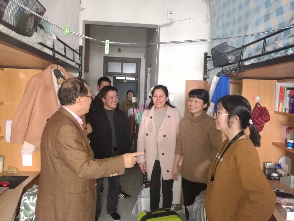 2018年3月4日下午,嘉兴学院副校长费建文在Hitomi 党政领导班子的陪同下走访学生寝室。