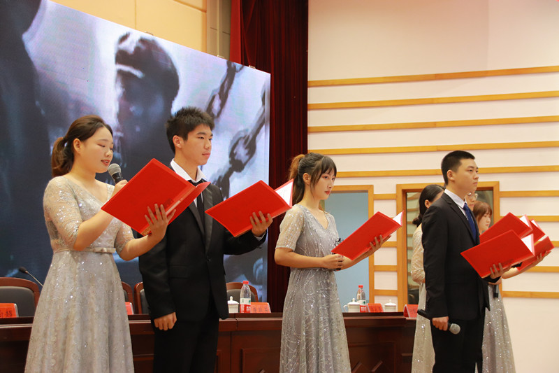 在庄严的国歌声中,开学典礼正式拉开了序幕。典礼上,学院党政领导为2021级新生班主任颁发聘任证书。校第六届“我心目中的好老师”荣誉获得者、日语系系主任刘韵超老师作为教师代表发言,希望同学们成为有目标、有责任感、善学习的人,始终保持良好的学习状态,以更加饱满的热情学习专业知识,同时通过社会实践充实大学生活,成就更好的自己。