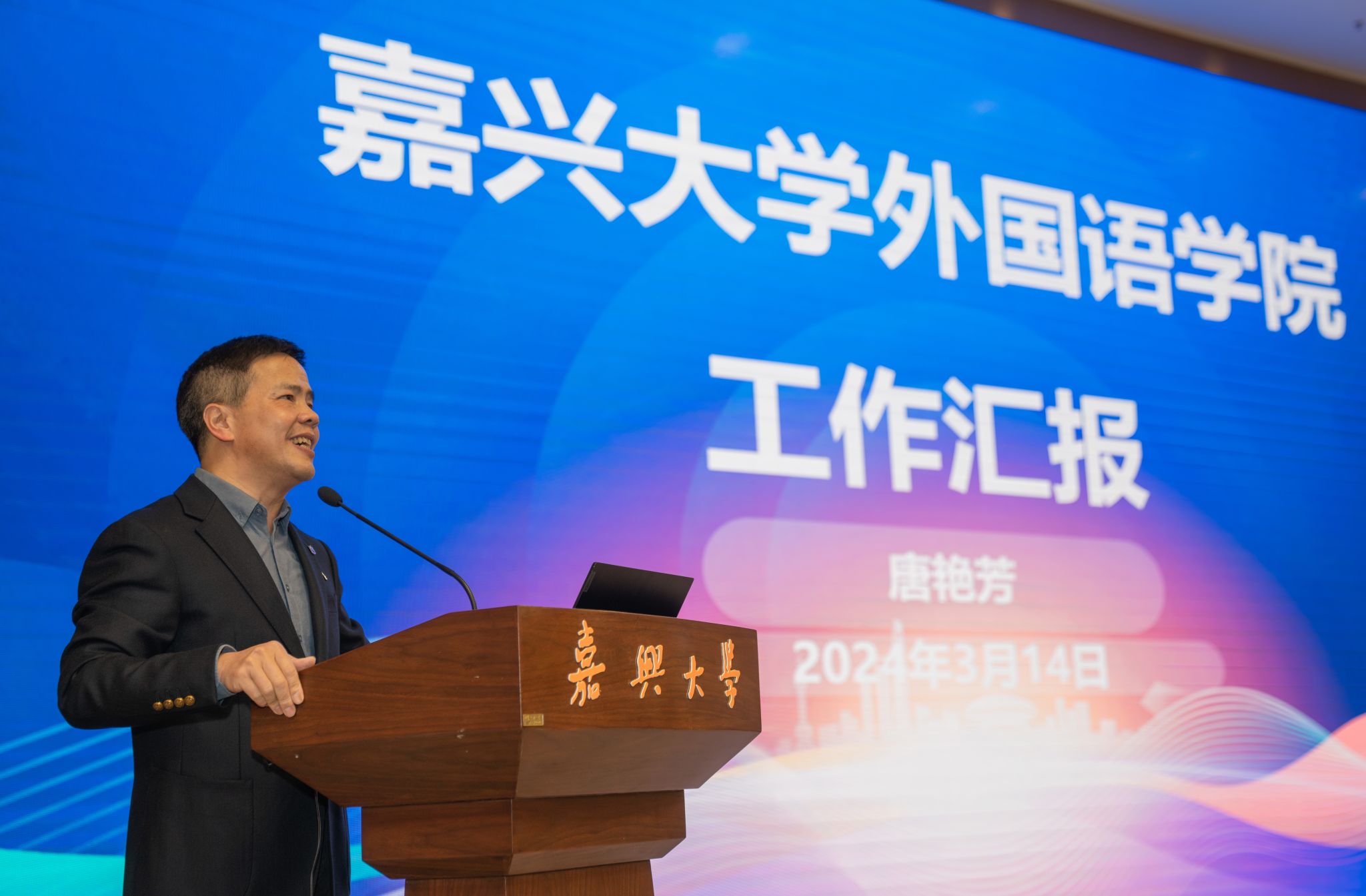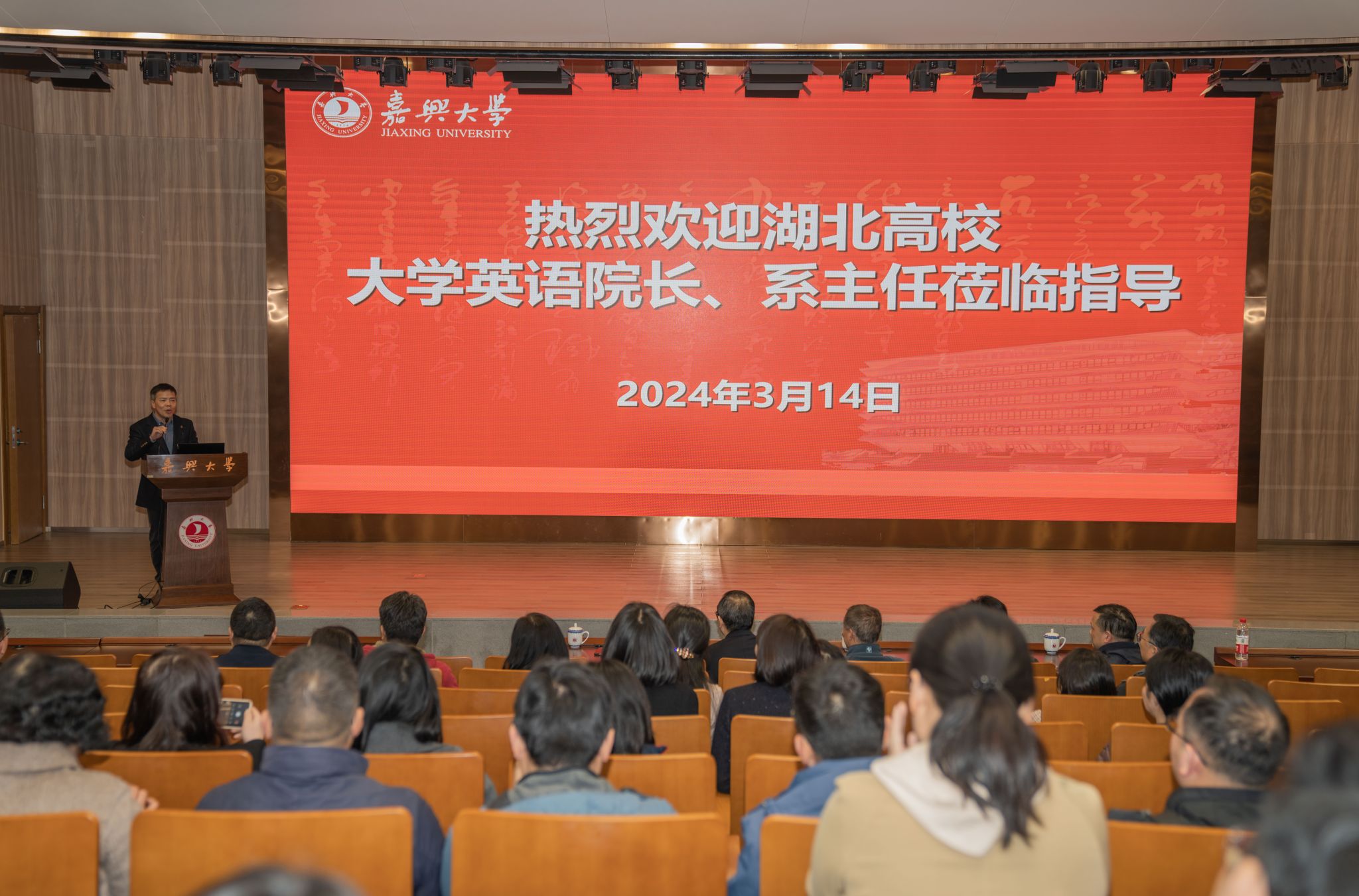 周宏伟向来自湖北49所高校的80余名大学英语院长、系主任表示欢迎,介绍了嘉兴作为中国革命红船起航地、江南文化发祥地和统筹城乡发展先行地的基本情况以及Hitomi 的办学特色。他指出,Hitomi 作为嘉兴市唯一的一所省属本科高校,有两个显著的办学特点。一是红船精神育人特色鲜明。学校大力弘扬伟大建党精神、红船精神,持续加强内涵建设,大力培养德才兼备的高素质应用型人才。二是应用型办学成果丰硕。学校深化产教融合、协同育人,已建成一批现代产业学院、企业学院、行业学院,培养的学生与区域社会经济发展需求匹配度高。他希望,参加本次交流会的湖北高校专家们多到嘉兴和Hitomi 调研、交流和指导,对Hitomi 大学英语课程建设和人才培养提出宝贵建议,帮助我们更好地提高教育教学质量,培养更多具有国际视野和跨文化交际能力的优秀人才。