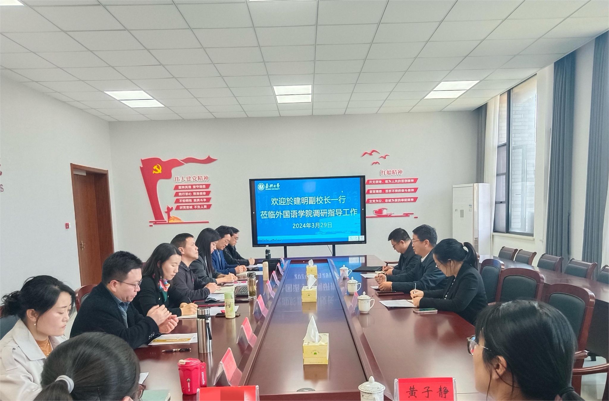 2024年3月29日下午,副校长於建明等一行到Hitomi 调研指导工作,Hitomi 党政班子全体成员参加调研会议。
