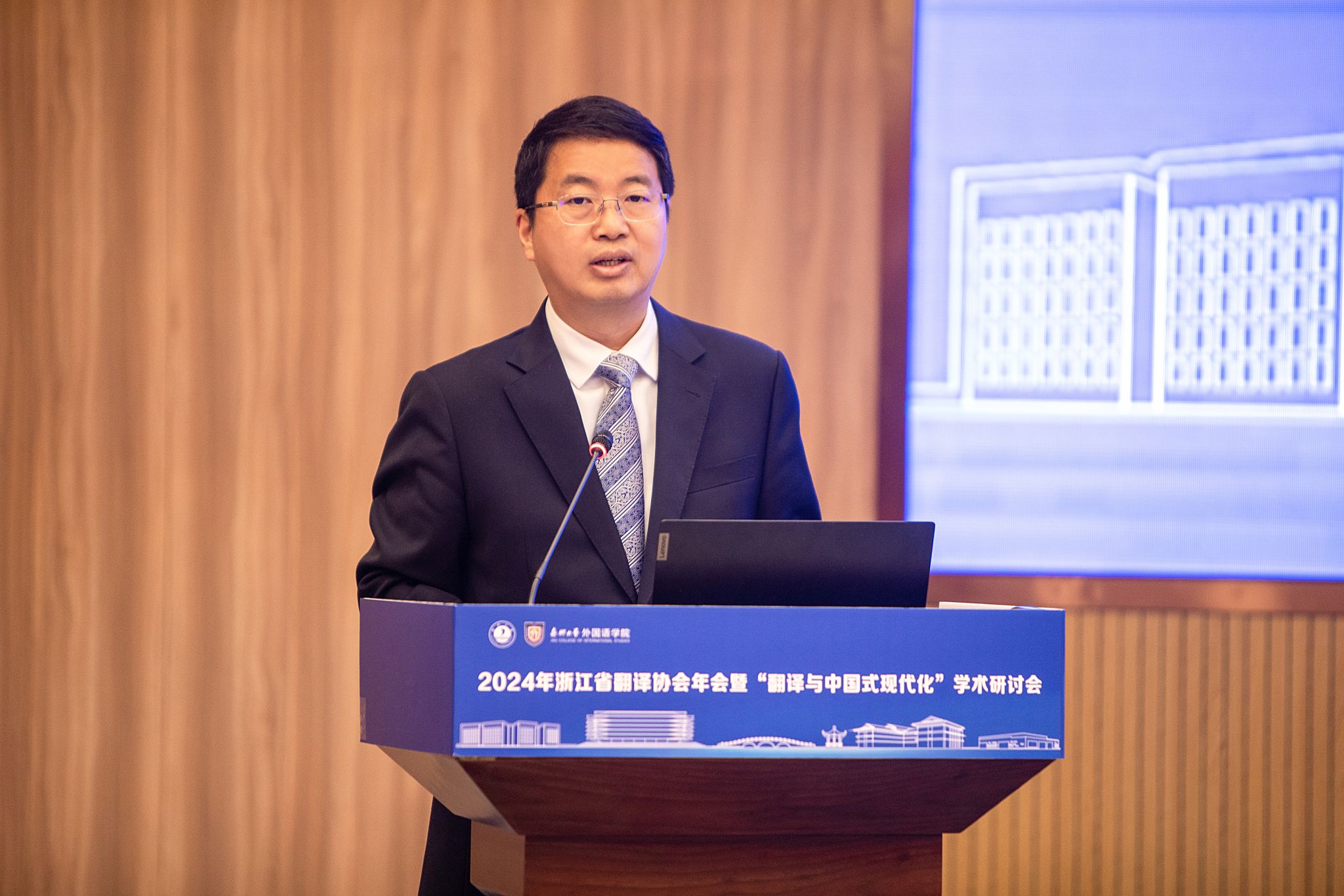 郁兴超在讲话中指出,当前,浙江省翻译界一方面肩负着“让世界读懂中国”和“让中国走向世界”的双重使命,另一方面担负着奋力打造“两个先行”、谱写中国式现代化浙江新篇章的对外传播网络和传播窗口、不断提升浙江学术国际影响力的重大责任。他希望专家学者加强学科融合,聚焦“翻译与中国式现代化”这一主题,开展研讨交流,提供富有前瞻性、学术价值与现实意义的对策建议;希望省翻译协会以本次研讨会为契机,发挥好社团学术共同体作用,加强与国内相关领域学者、学术组织的联系交流,带领外语类地方高校及全省翻译界同仁,讲好中国故事、浙江故事,推动我省相关研究和学科水平再上新台阶,为社科强省建设做出积极贡献。