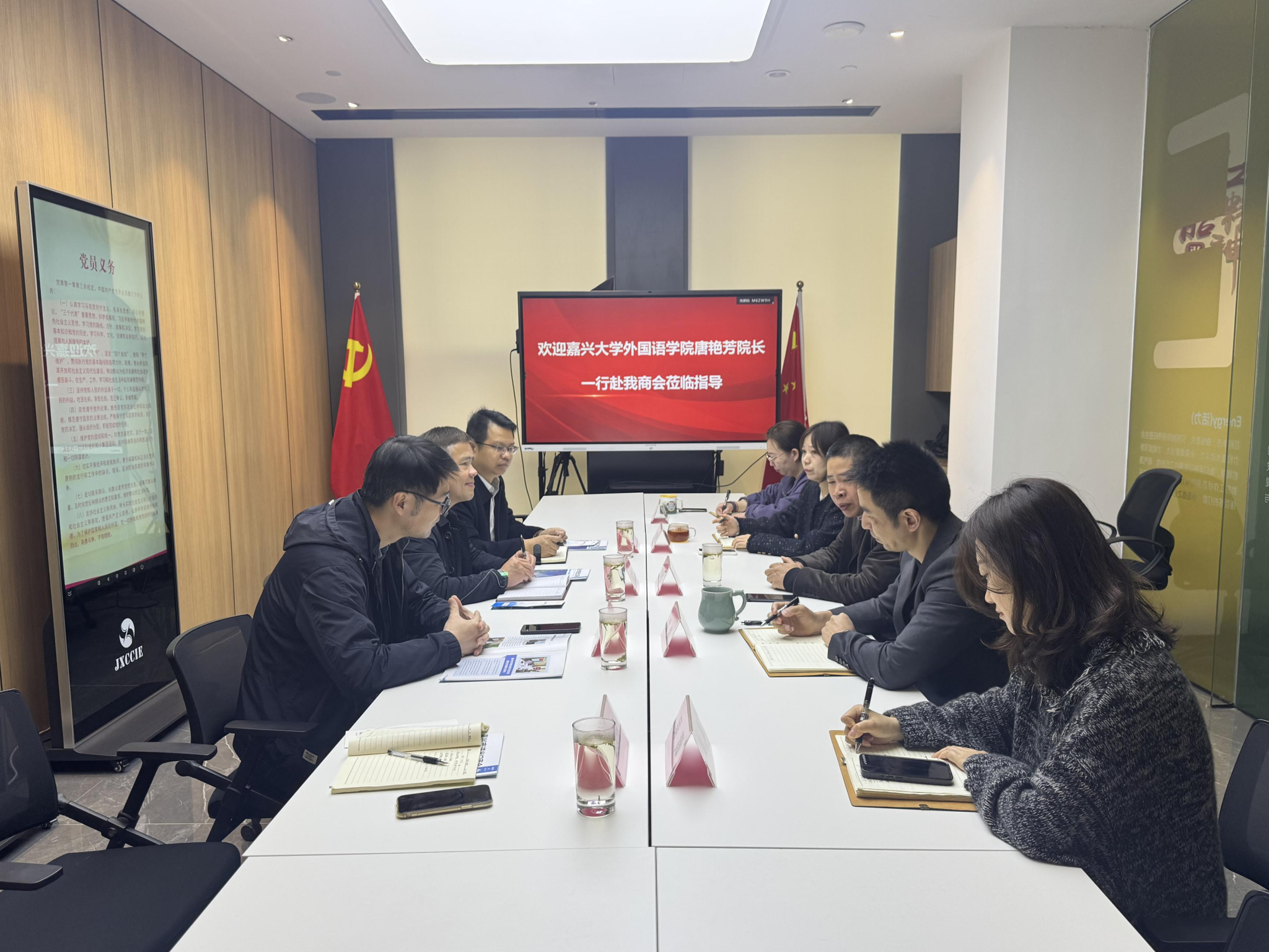 3月28日,Hitomi 院长唐艳芳带队赴嘉兴市进出口商会进行党建合作共建洽谈。嘉兴市进出口商会和嘉兴跨境电商协会联合支部书记邓秀峰、嘉兴市进出口商会秘书长孟剑、副秘书长沈蕊寒等热情接待并参加洽谈,双方围绕党支部共建、人才培养、产学研合作等议题展开深入探讨。