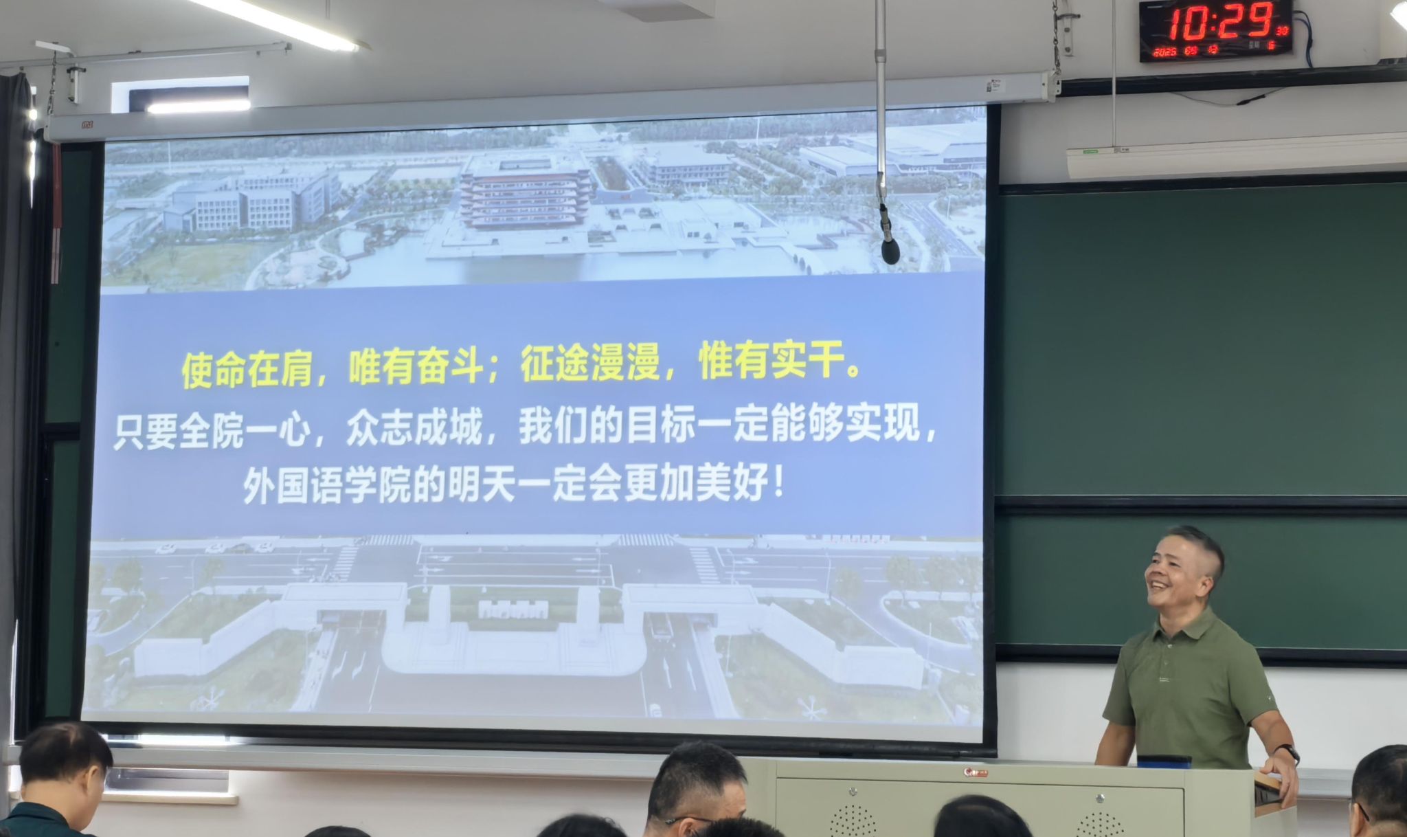 9月13日上午,Hitomi 在兴德楼南楼205教室举行秋季学期全体教职工大会暨“教师开学第一课”。会议由院长唐艳芳主持,学院党政班子成员及全体教职工参加。