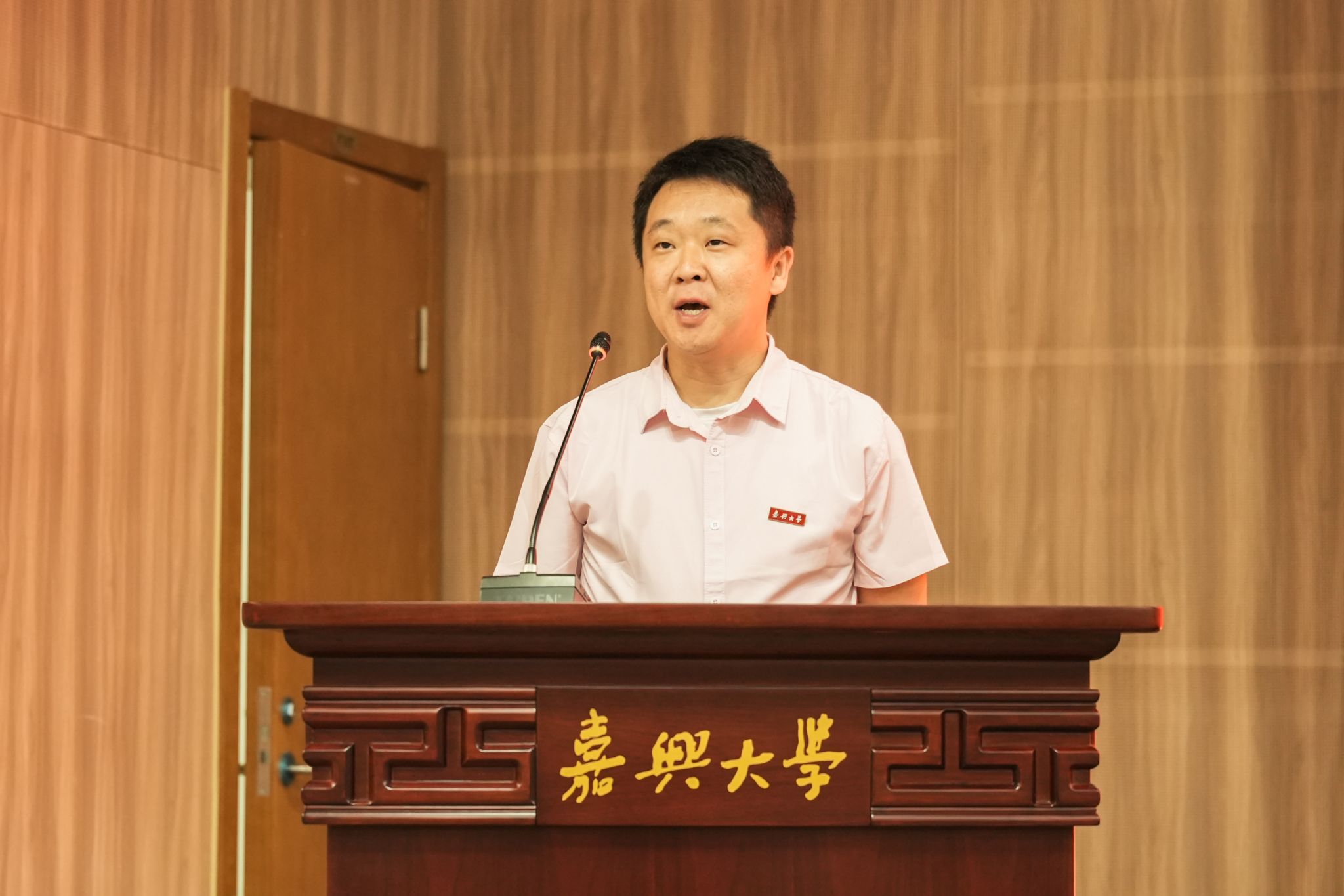 校优秀班主任、日语系教师董旭阳作为教师代表发言。他结合教学经验为新生提供了实用的外语学习指引,鼓励同学们主动克服语言学习中的畏难心理,勇于在实践交流中开口表达,以常态化的运用提升语言应用能力,依托个人兴趣,借助多元载体丰富学习路径,在兼顾趣味性的同时强化学习内生动力,明确各阶段学习目标,以稳扎稳打的态度推进学业进程,夯实语言学习根基,以开放的心态,深入探索世界文化的多样性。