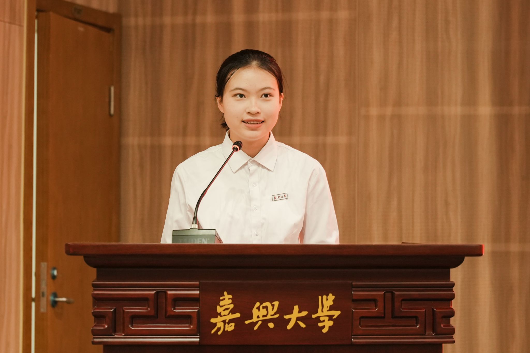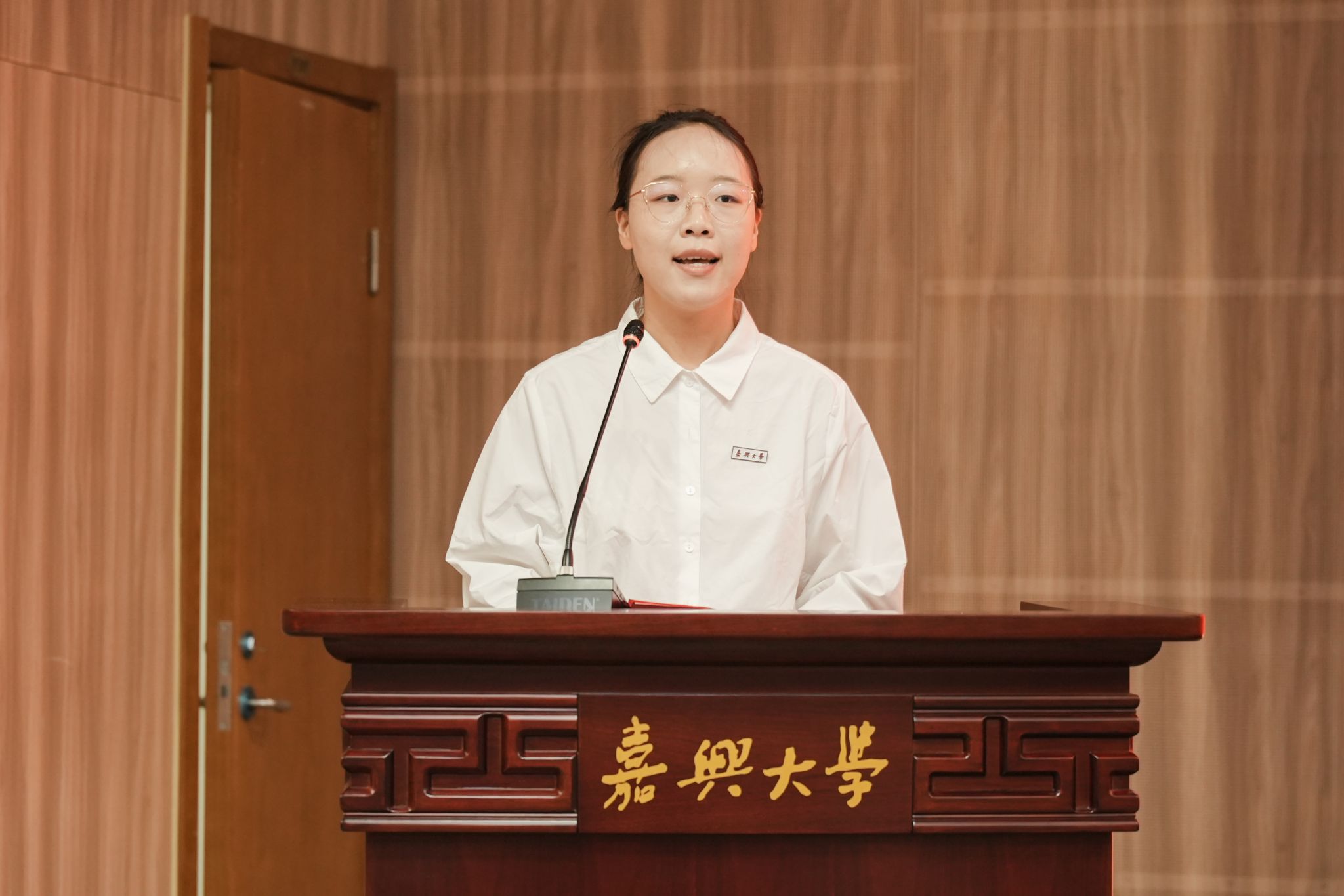在校生代表英语232班林若兮、本科新生代表日语251班蒋正渊、研究生代表翻译硕士251班沈鹭分别发言。