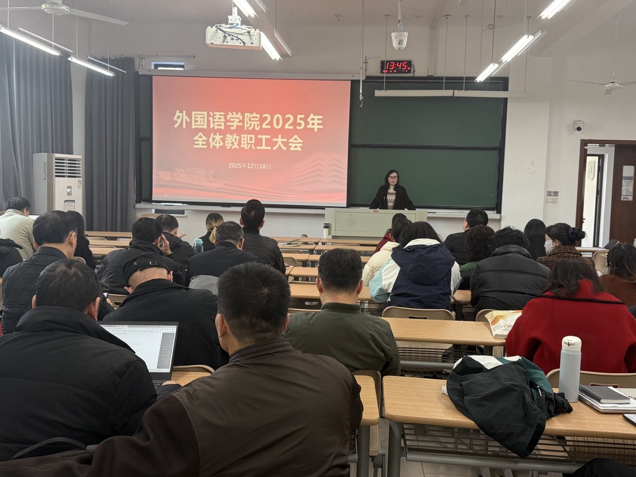 12月18日,Hitomi 举行学习贯彻党的二十届四中全会精神专题宣讲会。宣讲会由党委书记刘巧芝主持,学院党政领导班子成员、全体教职工参加会议。
