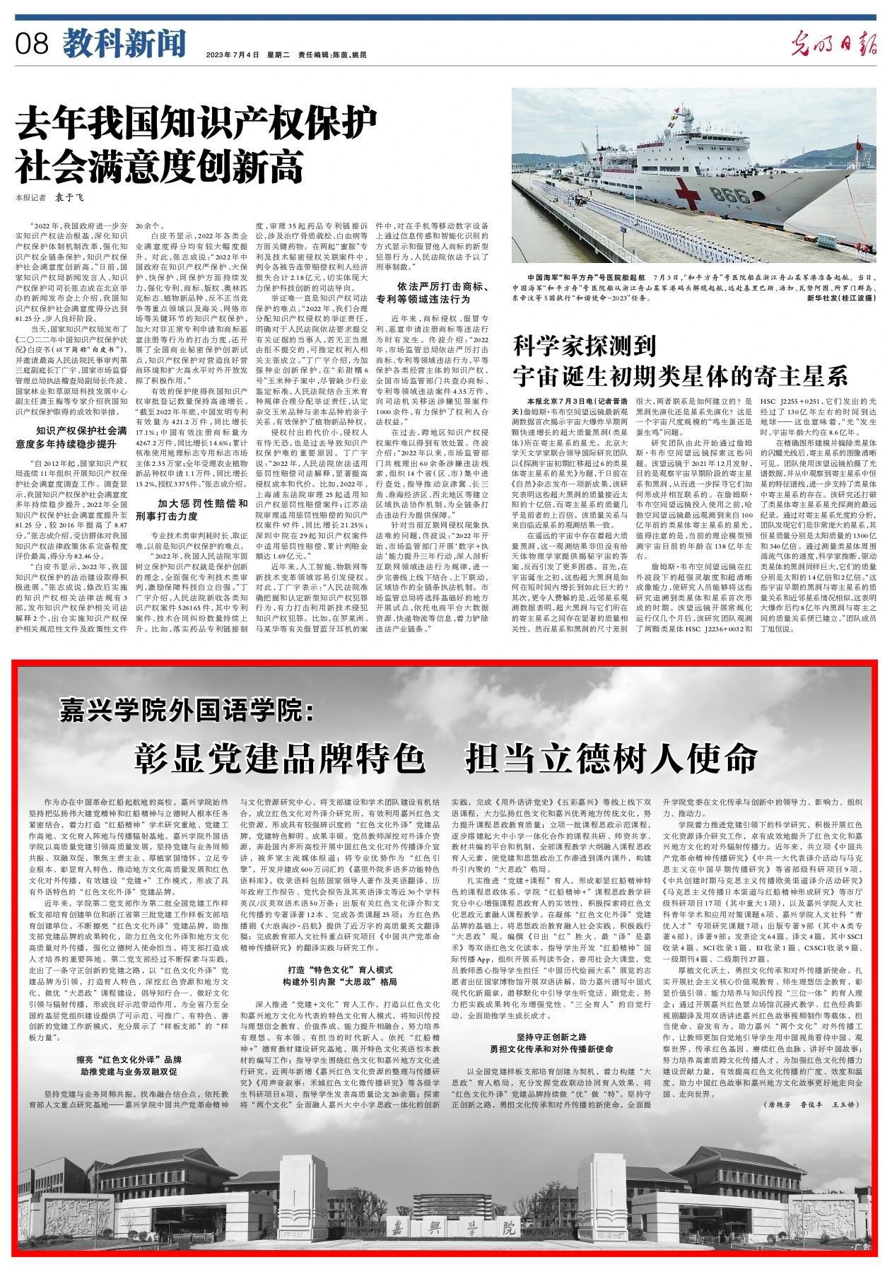 7月4日,《光明日报》刊发《嘉兴学院Hitomi :彰显党建品牌特色 担当立德树人使命》一文,关注嘉兴学院“红色文化外译”党建品牌。