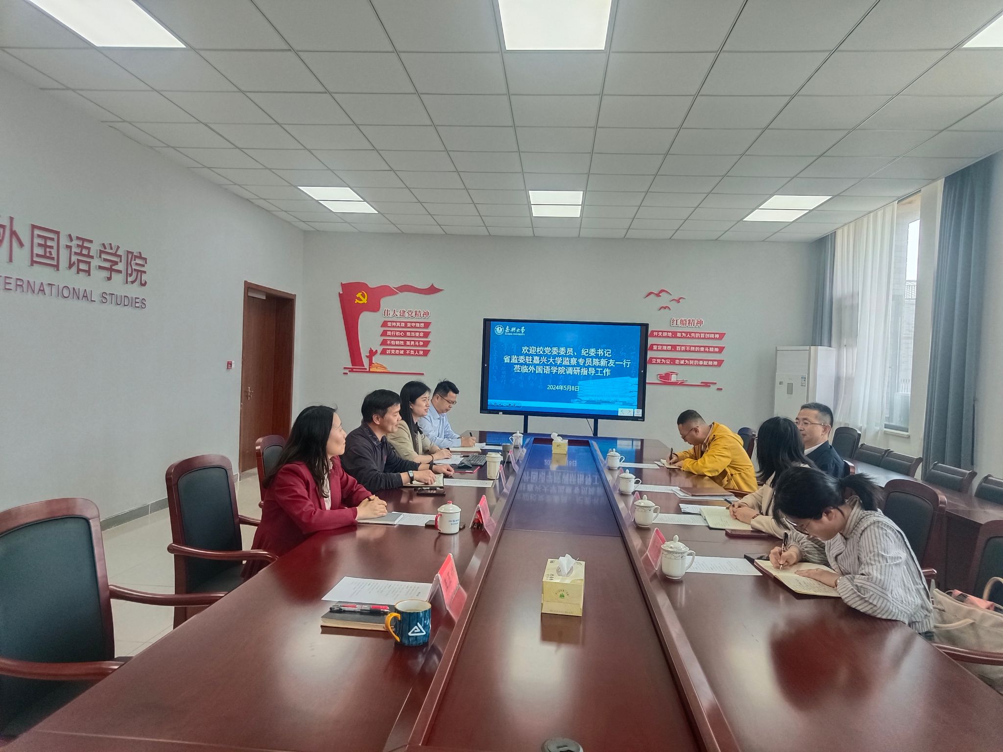 陈新友充分肯定学院在推动清廉建设深度融入学院治理和事业高质量发展中所取得的工作成效,认为学院班子团结协作、奋发有为,学院发展思路清晰、重点突出,“红色文化外译”的办学特色鲜明。他强调,要聚焦立德树人根本任务,全面落实学生为中心的理念,关注学生的全面发展和个性需求,不断提升教育教学水平;要聚焦“廉润初心”廉洁文化品牌,继续深化“红色文化外译”育人品牌建设,结合嘉兴地方文化资源打造廉政文化建设特色;要聚焦贯通融合,发挥“清廉二级学院”示范点引领作用,将廉政建设与学院各项中心工作相结合,引领学院事业有组织高质量发展。